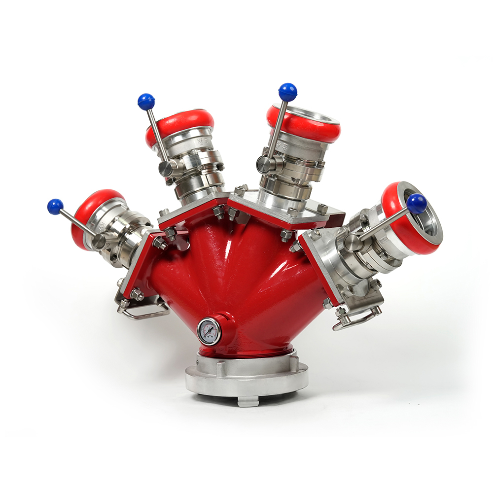 Home / Produkt / Verteiler / Verriegelbarer Feuerwehrschlauchverteiler / Verriegelbarer Vierwege-Feuerwehrschlauchverteiler